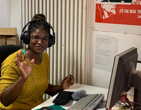 Emails from Birgitte Jallov to The Communication Initiative on April 21 2020 and April 22 2020; and CMFE website, April 21 2020. Image caption/credit: Rouby from Our Voice at Radio Dreyeckland Freiburg (Photo: Nadia Bellardi)