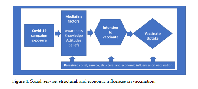 The model presented in the paper is also based on prior vaccination research efforts that understand vaccine uptake as being mediated by changes in vaccine beliefs and intentions delivered through COVID-19 promotional campaign exposures (e.g., consumption of advertisements and other content on media, including social media). This process of demand creation through promotional efforts occurs in the context of social support from government and civil society, service and product availability, healthcare system structures, and economic factors that may promote or inhibit vaccine uptake. (See the figure above) Overcoming hesitancy requires acknowledging that demand creation occurs within these marketplace system dynamics and accounting for them in branded vaccination campaigns.