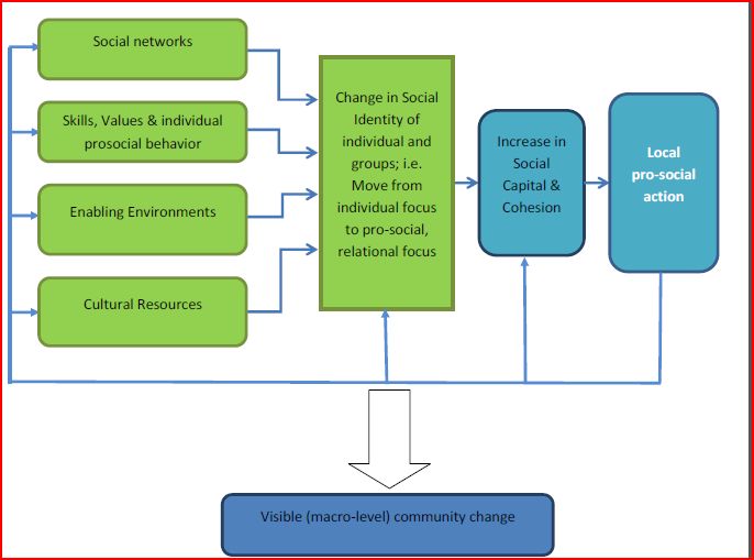 1. the growth of relationships in the community; the development of skills, attitudes, intentions, norms, and perceived behavioural control required for individual pro-social behaviour to be effected - "Self-reported skills for core participants significantly improved after HCTT interventions."