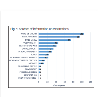 The most common sources of information about vaccination were word of mouth (friends, family, etc.) (50%), the family doctor (45.7%), traditional mass media (TV, radio, newspapers) (35.7%), and institutional websites (19.5%). Paediatricians and gynaecologists were sources of information in 21.4% and 16.2% of cases, respectively. During the pre-intervention phase, the quality of the information received from health professionals was judged to be excellent (9%), good (31%), sufficient (31%), insufficient (17%), and scarce (11%).