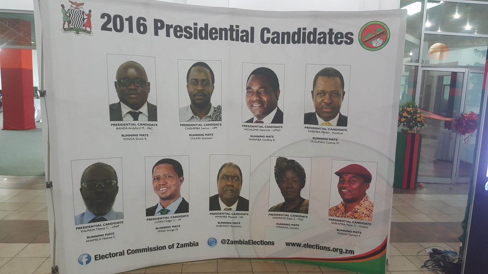 Lungu Edgar C of Patriotic Front PF, Hichilema Hakainde of United Part for National Development UPND, Edith Nawakwi of Forum for Democracy and Development FDD, Andyford M Banda of People’s Alliance for Change PAC, Wynter M Kabimba of Rainbow Party, Saviour Chishimba of United Progressive Party UPP, Tilyenji Kaunda of United National Independence Party UNIP, Peter Sinkamba of GREENS and Maxwell Mwamba of Democratic Alliance DA. These political parties took active roles in election campaigns.