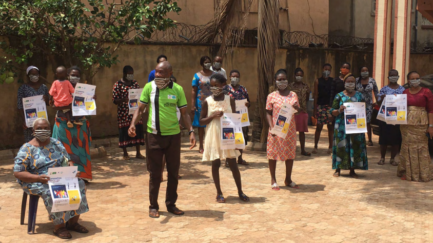 "Orchid Project Releases Report Detailing the Pandemic's Impact on Female Genital Cutting", by Hunter Kessous, Sahiyo, October 20 2020, and Orchid Project website, September 29 2020 - all accessed on November 4 2020; and email from Miranda Dobson to The Communication Initiative on November 10 2020. Image caption/credit: Dr. Chris Ugwu stands with community members in facemarks with COVID-19 posters. Society for the Improvement of Rural People (SIRP), Enugu State, Nigeria, 2020. © SIRP