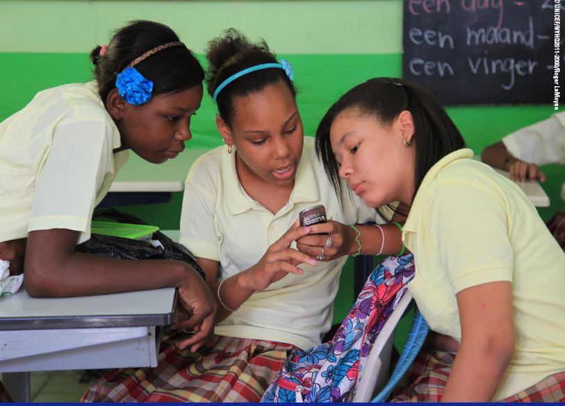 Linda Raftree's blog "Wait… What?" of October 11 2013, accessed October 17 2013 and email from Linda Raftree to The Communication Initiative on October 17 2013. Image credit and caption: UNICEF/2000/Roger LeMoyne Girls look at a mobile phone at All Children Education (ACE), a private school for immigrant children, in Philipsburg, St. Maarten, in the Caribbean.