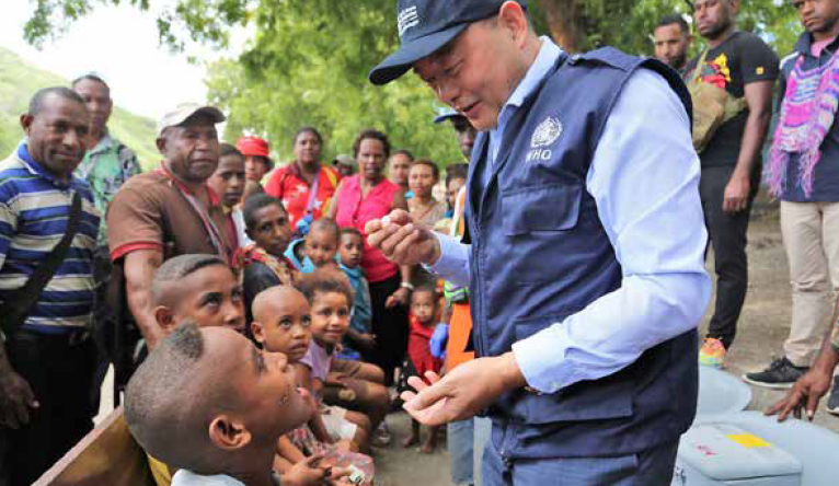 Looking ahead, the Minister for Health and HIV/AIDS declared 2019 as the Year of Immunization in Papua New Guinea on February 25 2019 in a ceremony attended by representatives from NDOH, WHO, UNICEF, Rotary International, media organisations, and other partners. Parents brought their children for vaccination during the launch.