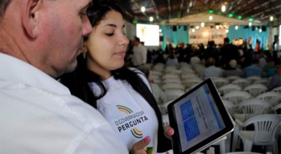 Email from Karen Brock to The Communication Initiative on May 5 2017; and Making All Voices Count website and Transforming Governance website, both access on May 9 2017. Image caption/credit: "Citizens provide feedback online during the Governador Pergunta initiative in Brazil." Credit: Gabinete Digital